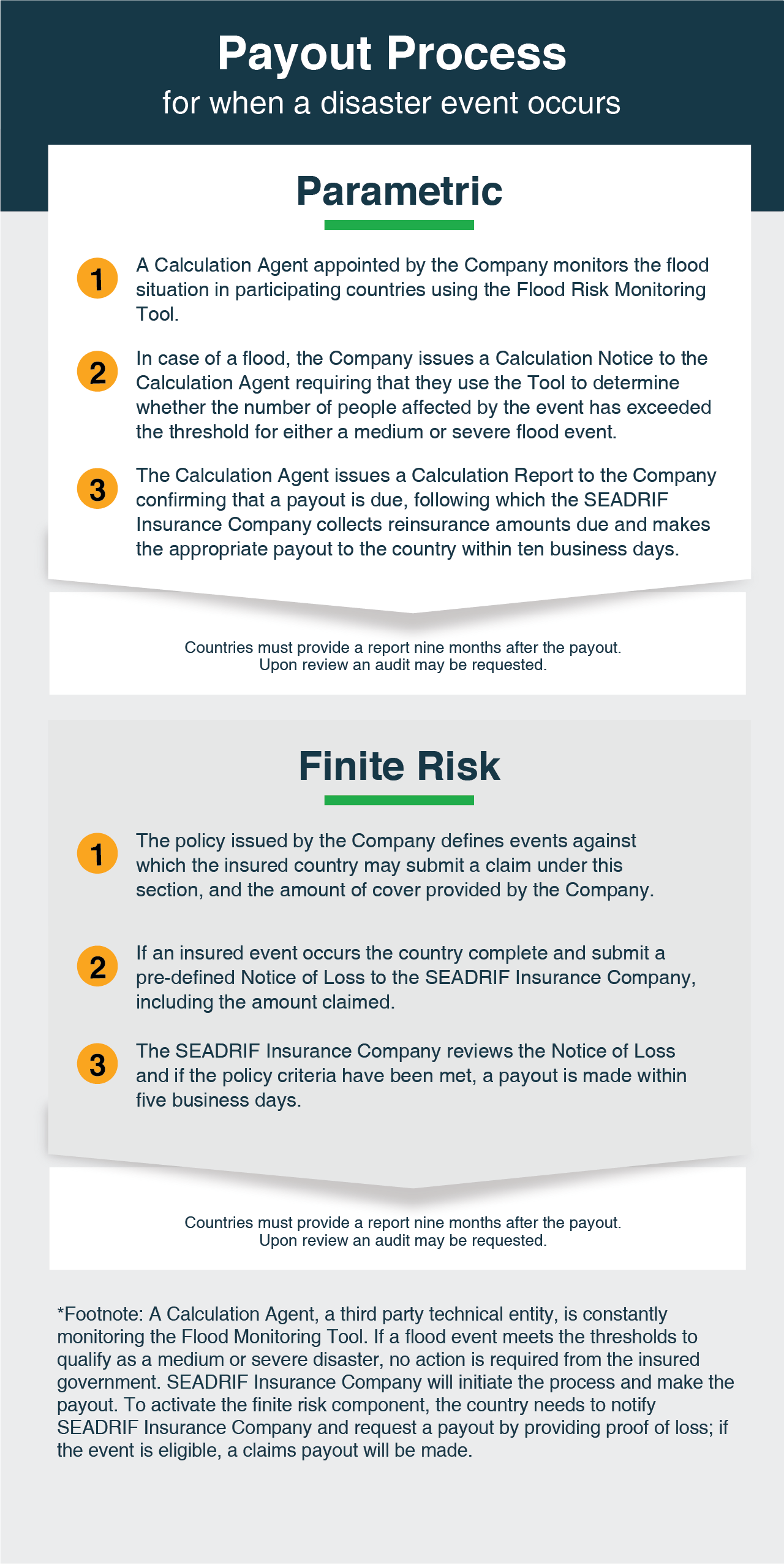 To sustain protection for its member countries over the long term, SEADRIF has put in place robust systems that ensure its products work optimally, with transparency and sound governance. The initiative is not managed for profit. Any income or capital is redeployed exclusively to achieve SEADRIF’s sole objective: providing financial protection to its member countries.